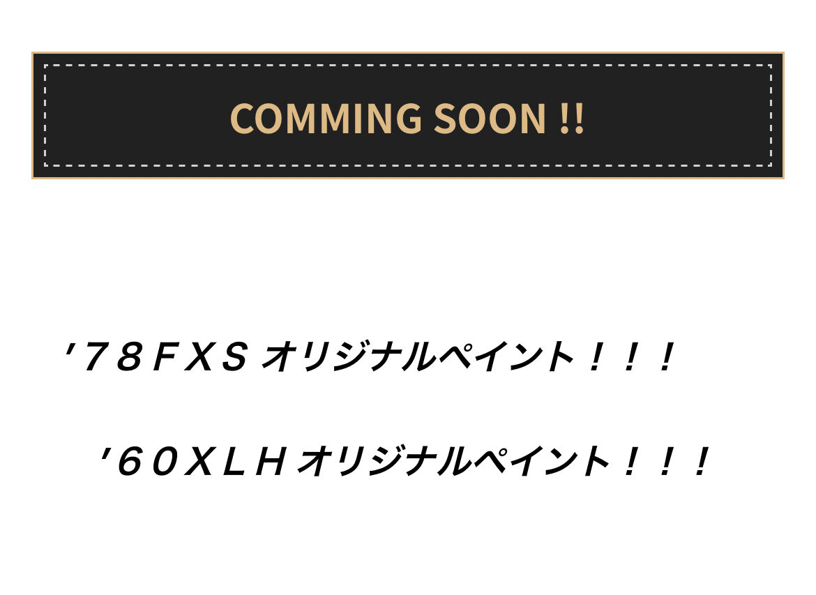 COMING SOON 2024年07月15日 コメント数:0 コメント カテゴリ:INFORMATIONMOTORCYCLES by bankara1200 オリジナルペイントの'78FXSローライダーが間もなく入荷します。ガンメタルグレーのペイントとデカールの状態はかなり良さそうです。他にもオリジルナルペイントのスポーツスターが入荷予定ですのでお気軽にお問合せください。よろしくお願いします。 「INFORMATION」カテゴリの最新記事 < 前の記事次の記事 > コメント コメントフォーム 名前 コメント 記事の評価 リセット リセット 顔 星 情報を記憶 コメントを投稿する